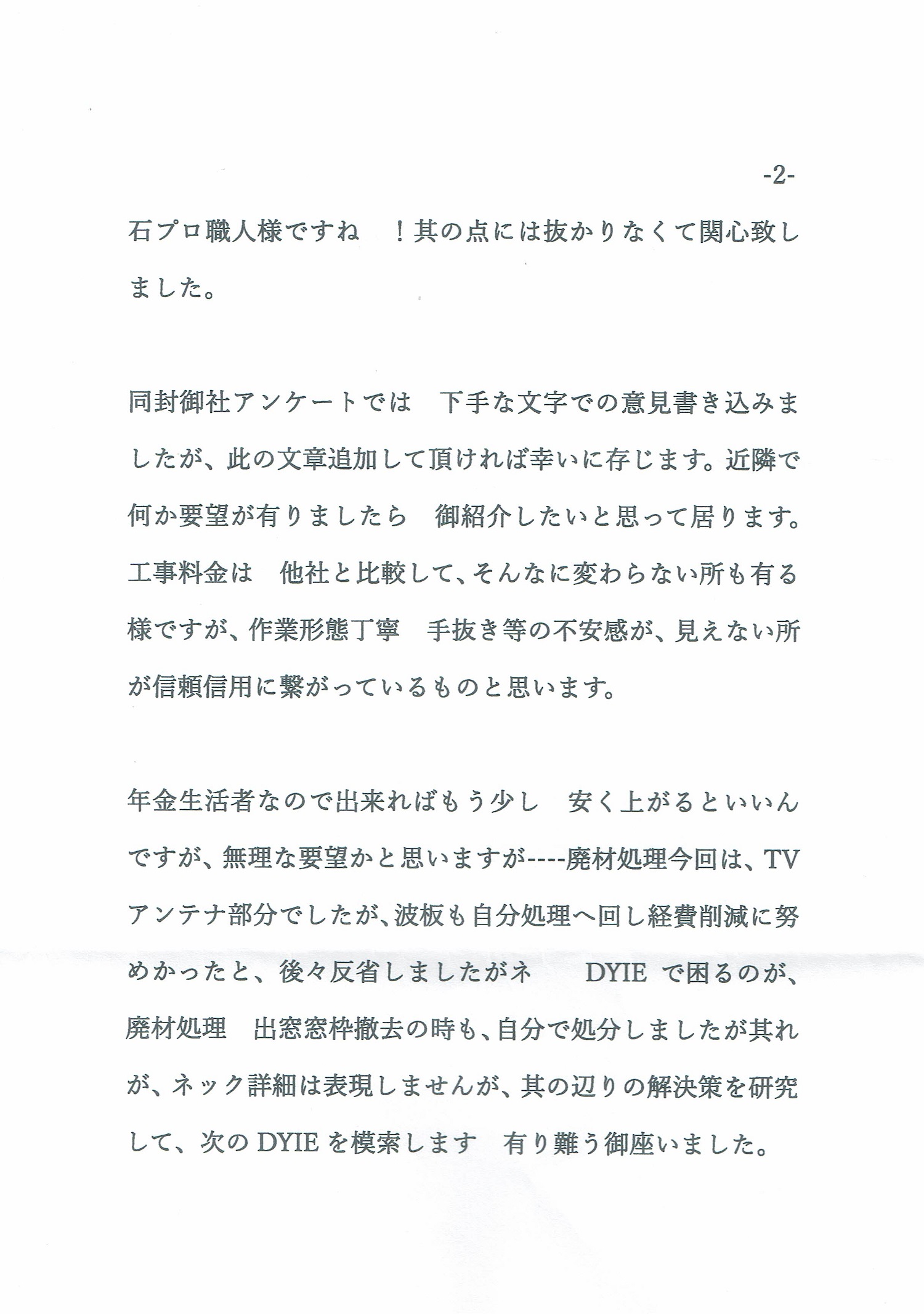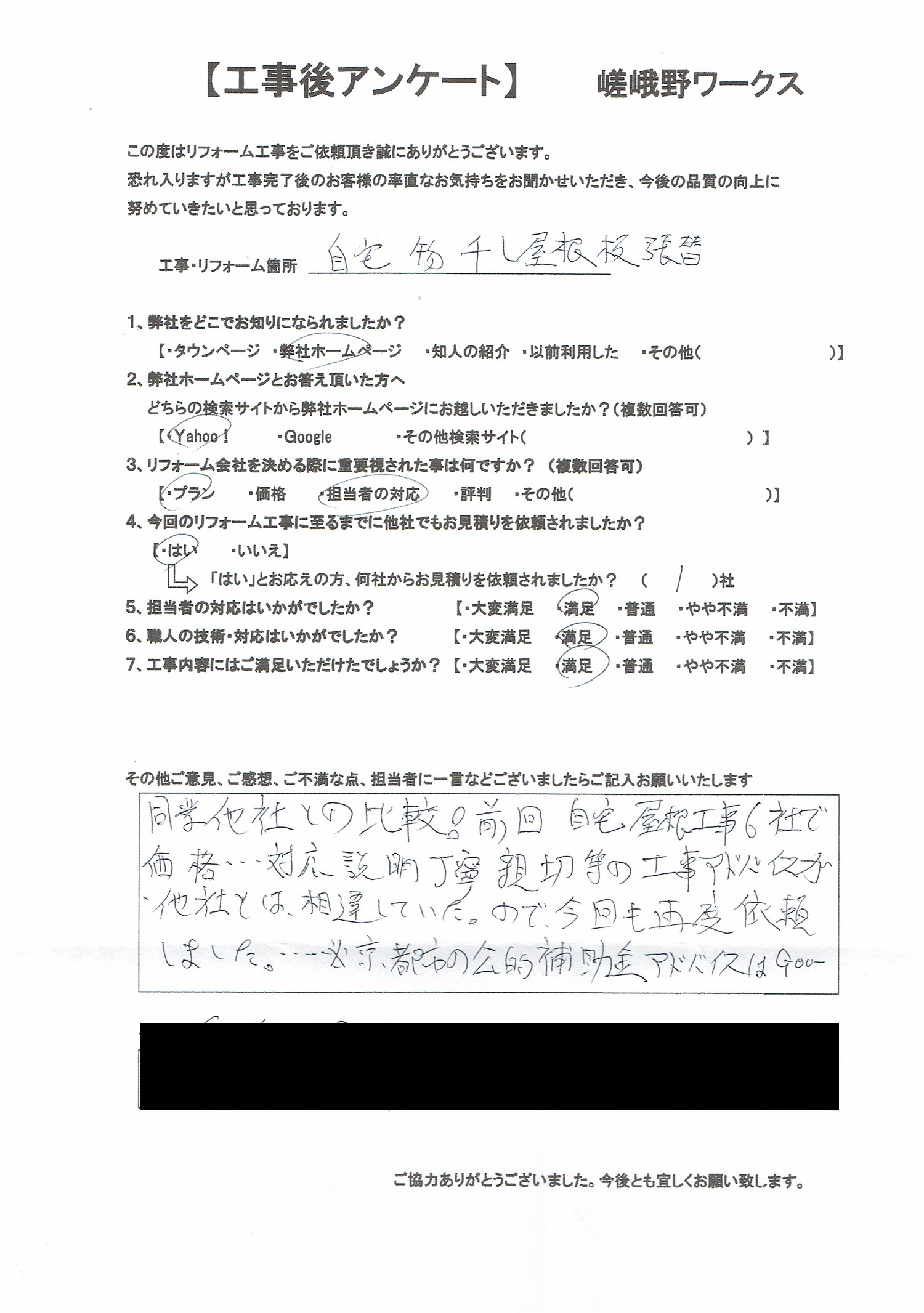 ポリカ波板張替工事 アンケート 2024-05-01 2025-05-12 同業他社との比較!前回自宅屋根工事6社で価格・・対応‥説明丁寧親切等の工事アドバイスが他社とは相違していたので今回も再度依頼しました。※京都市の公的補助金アドバイスはGOO- 其の他別紙にも記載いただきました。 ありがとうございました。 ←アンケートを拡大するには画像をクリック。