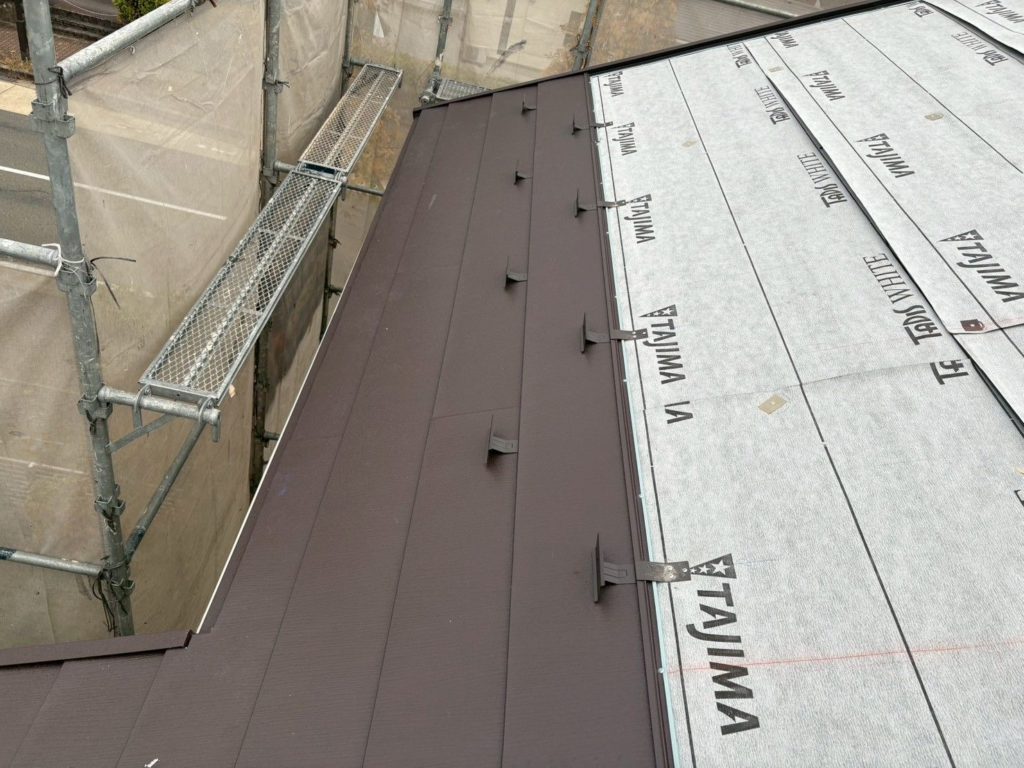 ご検討の結果、今回は屋根のカバー工法のご依頼いただき、工事を進めることになりました。屋根材はアイジー工業のスーパーガルテクトを採用いたしました。