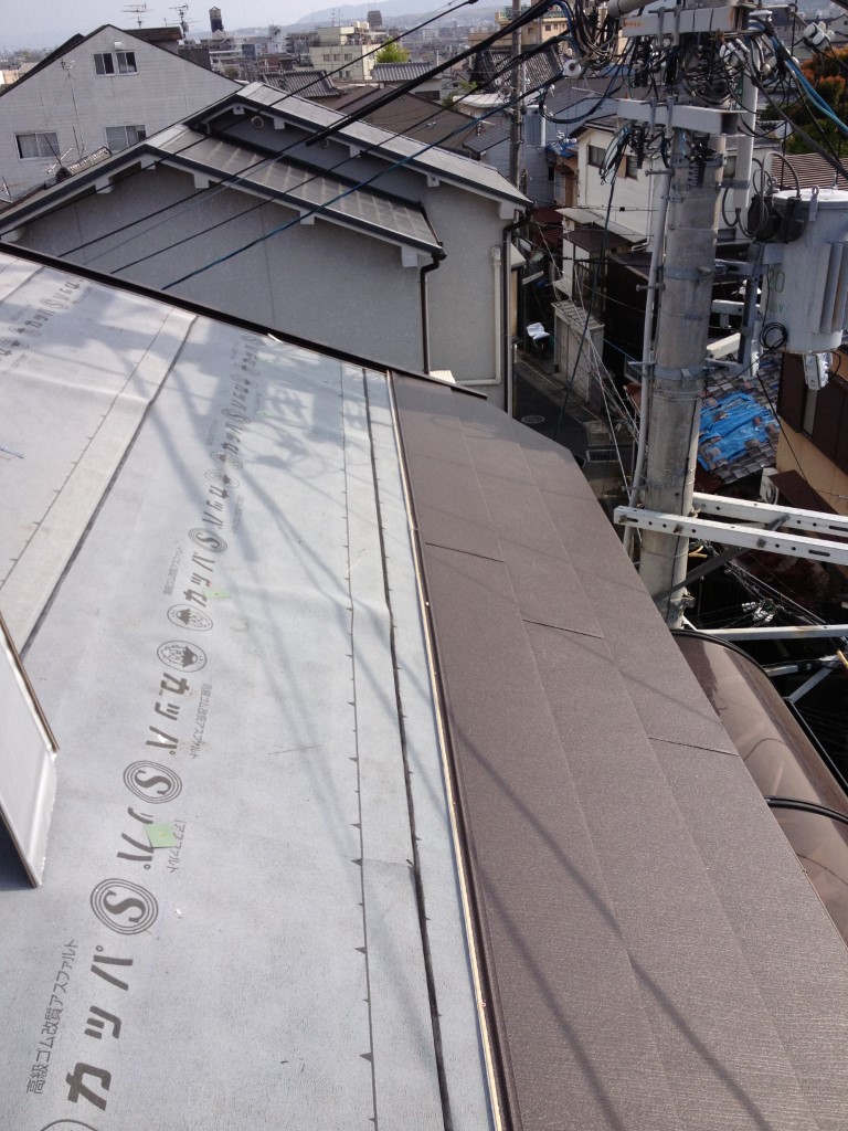 また、屋根についても、築年数や現状から考えて近い将来屋根工事が必要と判断し、足場を設置するこの機会に重ね葺きをしましょう、という事で工事を始めさせて頂きました。