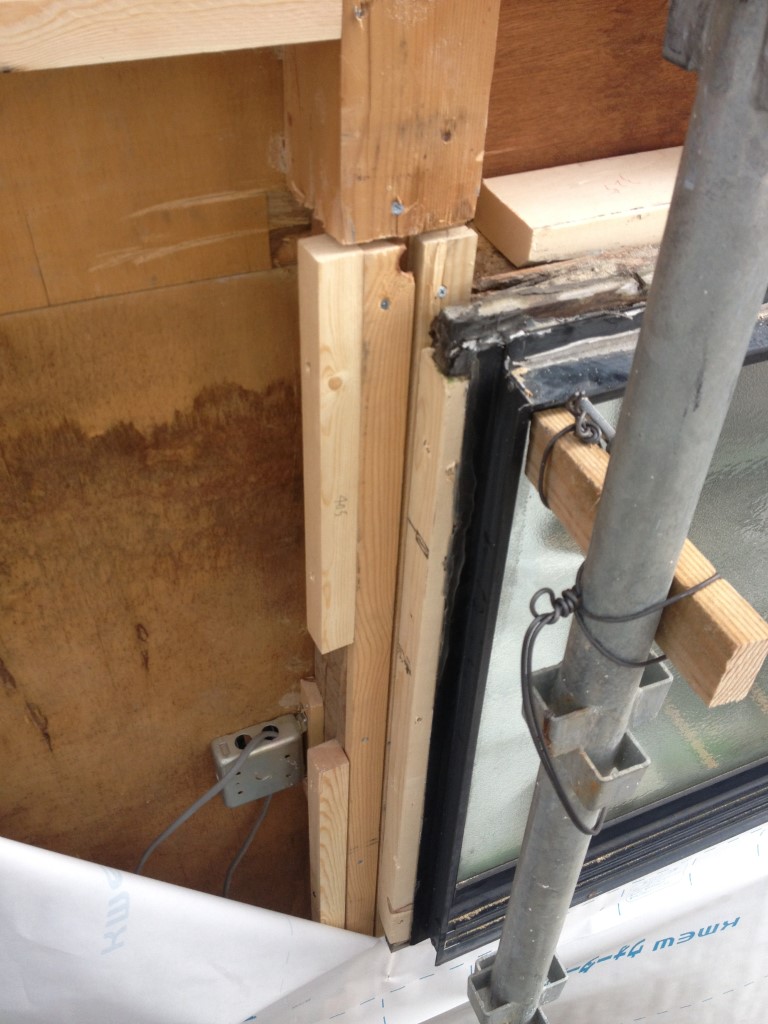 外壁を剥がしてみると、新築当初から防水シートがなく、当然雨漏りの状況もひどくなってしまっており、やはり柱が腐朽していましたので、補強工事が必要となります。
